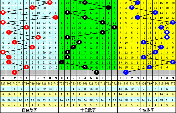 另外,在组选0-9的号码分布中,号码2、5、7、8表现最冷,开出4次;号码6走势最热,开出了10次。本期预计号码组25678中落号,参考号码8。