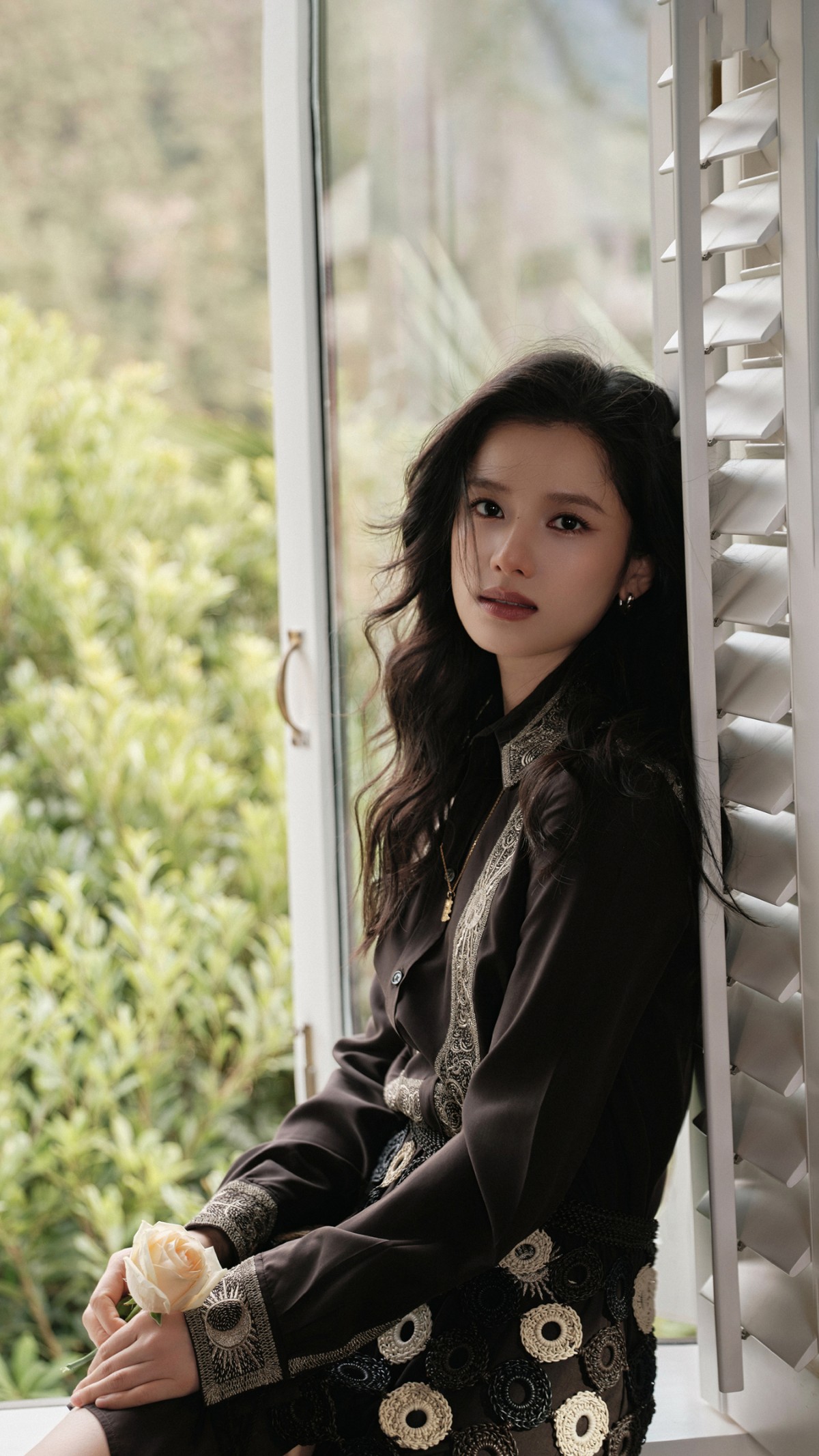 脚踩一双硬朗黑长靴?绝了!柔美裙摆遇上利落靴筒,刚柔并济得恰到好处,仿佛在说:“我可以温婉如诗,也能飒到让你回头三遍。”她斜倚在老屋檐下,一手随意搭在青瓦上,卷发随风轻扬,几缕碎发在阳光里跳舞——这哪是摆拍,分明是生活本身在发光。